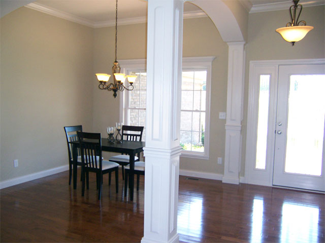 dining room and foyer; formal living room/ office has cathedral ceilings;